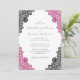 Elegant hot pink and black wedding invitation featuring elegant floral lace. Easily personalize this wedding card with your wedding details online.