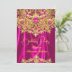 Elegant Hot Pink gems Gold Lace Damask Birthday Einladung
