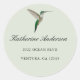 Eleganter Aufkleber mit einem rubingekrempelten Hummingbird-Weibchen im Flug. Der Stil des Schriftartes, die Größe des Schriftartes und die Farbe können geändert werden. Fügen Sie Umschläge, Pakete und Briefe eine persönliche Touch hinzu. Das Design kann auch auf andere Produkte übertragen werden. Das Hummingvogelbild wurde von Christiane Dobbins aus dem Originalwerk übernommen.