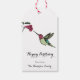 Diese einfachen und eleganten Geschenkanhänger zeigen eine handgezeichnet Illustration eines wunderschönen Kolibri, der aus einer Bignonia-Blume in schwarzer Tinte trinkt. Auf der Rückseite sehen Sie ein Muster von Kolibris. Passen Sie Ihren Namen an.