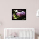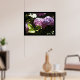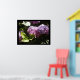 Eine schöne Art, Ihre Wand mit diesem eleganten Hydrangea-Druck zu verkleiden. Gerahmt von einem schwarzen Grenz-Lila und rosa Hydrangeas, eingebettet in das grüne Laub. Die Sonne fängt gerade die Blätter.