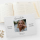 Der Verlust eines geliebten Menschen wird von einer Gemeinschaft von Menschen empfunden. Vergessen Sie nicht, ein Gästebuch bei der Ansammlung Ihrer Serviceplanungsmaterialien einzufügen. Geben Sie denjenigen, die an der Feier des Lebens, der Gedenkfeier, des weck- oder Beerdigungsdienstes teilnehmen, einen Ort, um ihren Namen zu unterschreiben und ein liebevolles Denken zu teilen. Dieser Sake wird für immer geschätzt und wird in diesen schwierigen Tagen eine große Quelle des Komforts sein. Elegant und einfach, dieses Gästebuch mit einem schönen Branchentext kann für Ihre Bedürfnisse personalisiert sein.