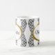 Sie können diese Tasse mit einem schwarz-weißen Zickzack-Hintergrund mit einem goldenen Glitzer-Kalligrafiekreis und Vorlagentext leicht personalisieren. Füllen Sie die Vorlagenfelder aus, die den Namen und den ursprünglichen Buchstaben auf beiden Seiten ändern.