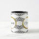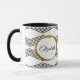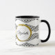 Sie können diese Tasse mit einem schwarz-weißen Zickzack-Hintergrund mit einem goldenen Glitzer-Kalligrafiekreis und Vorlagentext leicht personalisieren. Füllen Sie die Vorlagenfelder aus, die den Text auf beiden Seiten verändern, oder klicken Sie auf Anpassen, um den gewünschten Schriftstil, Schriftgröße und Farbe auszuwählen.