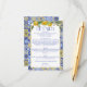 Elegant Italian Blue Tile Lemons Citrus Wedding Begleitkarte