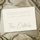 Celebrate your love with this minimalist ivory cream small wedding details enclosure card design. Featuring an elegant, simple design, it's perfect for an elegant autumn ceremony. This earthy, modern look offers a warm and sophisticated feel for your wedding. Created by Simply Farmhouse Press.