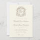 This elegant ivory monogram wedding invitation features an ornate crest with interlocked fancy script calligraphy for the initials of the bride and groom and the names. Find matching products in the collection, or message me through Zazzle Chat for more products and design tweaks.