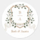 Elegantes Ivy Branch Greenery Wappen Wedding Umschlag Aufkleber Sticker. Weiße Blume Grüne Hochzeitsticker. Aufkleber für das Wappen Monogram des grünen Gipskrauts