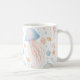 This mug showcases a graceful jellyfish illustrated in soft pastel tones, surrounded by charming ocean details like starfish, seashells, bubbles, and coral accents. The gentle color palette and fluid lines create a calming marine vibe, making it a perfect gift for sea lovers or anyone who enjoys artistic, nature-inspired drinkware.