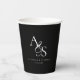 Elegante, klassische, Monogram, Black, Wedding Paper Cups mit Ihrem Namen und Datum. Feiern Sie Ihren besonderen Tag mit Eleganz und Anmut mit unserem exquisiten Hochzeitsgast-Buch, das Ihre wertvollen Erinnerungen bewahren soll. Das minimalistische, moderne, monogrammatikalische Design verströmt Luxus und Eleganz und ist somit die perfekte Ergänzung zu Ihrer Hochzeit im Sommer, Herbst oder Winter.