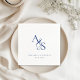 Elegant, klassisch, Monogramm, Weiß, Hochzeit Napkin mit Ihrem Namen und Datum. Elegant, klassisch, Monogramm, Weiß, Hochzeit Napkin mit Ihrem Namen und Datum. Fügen Sie Ihrem Hochzeitsempfang eine Touch Eleganz hinzu, mit diesen individuell anpassbaren, monogramm Hochzeitsnapkins. Mit klassischem Design mit den Initialen, Namen und dem Hochzeitstag des Paares in luxuriösem Gold-Druck schaffen diese Servietten eine elegante Atmosphäre für Ihren besonderen Tag. Sie sind perfekt für Hochzeiten, Verlobungen und Jubiläumsfeiern geeignet und bieten ein personalisiertes und raffiniertes Detail, an das sich Ihre Gäste erinnern werden. Diese aus hochwertigen Materialien gefertigten Servietten bereichern nicht nur Ihre Tischdekoration, sondern dienen auch als Sake für Ihre gepflegten Erinnerungen. Passen Sie Ihre Servietten heute an und machen Sie Ihre Veranstaltung unvergesslich. Personalisierbar mit Initialen, Namen und Datum Elegantes blaues Monogramm-Design Perfekt für Hochzeiten, Jubiläen und Feiern