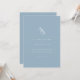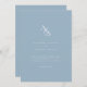 Elegant, klassisch, monogramm, pulverblau, Hochzeitseinladung. Erleben Sie einen besonderen Tag mit einer Einladung, die zeitlose Eleganz und moderne Einfachheit verbindet. Unsere minimalistische Hochzeitseinladung beinhaltet ein subtiles, klassisches Monogramm, das sowohl traditionelle als auch zeitgenössische Hochzeitsstile ergänzt. Dieses vielseitige Design verbindet sich mühelos mit jeder Farbpalette und bietet unendlich viele Möglichkeiten, Ihre Persönlichkeit und den Stil Ihrer Hochzeit zu reflektieren. Erhältlich als hochwertiger Druck oder als Öko-freundlicher Download, ideal für alle, die einen geringeren CO2-Fußabdruck bevorzugen. Die digitale Option ist nicht nur nachhaltig, sondern auch ideal für diejenigen, die Flexibilität schätzen und ihre Einladungen individuell gestalten möchten. Mit einer benutzerfreundlichen Bearbeitungsfunktion können Sie Ihre Initialen und andere wichtige Details schnell anpassen, um Ihre Einladung wirklich einzigartig zu machen. Ob klassisch oder modern, diese Einladung wird Ihrer Feier eine Touch zeitloser Schönheit und schlichten Stils verleihen.