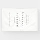 Elegantes, klassisches, Monogramm, Weiß-Schwarz, Begrüßungsbanner. Dieses exquisite Stück wurde entworfen, um das Ambiente Ihres besonderen Tages mit seiner zeitlosen Eleganz und anpassbaren Eigenschaften zu erhöhen. Ehepaare können ihren Namen und ihr Hochzeitsdatum hinzufügen, um ihre Einrichtung wirklich einzigartig und reflektierend für ihre Liebe zu machen. Ob am Eingang Ihres Veranstaltungsortes oder als Brennpunkt Ihres Empfangs, diese personalisierte Touch verlasst Ihren Gästen einen bleibenden Eindruck. Mit unserem eleganten, weißen und minimalen Hochzeitsbanner "Welcome Banner" schaffen Sie ein unvergessliches Hochzeitsambiente. Jetzt kaufen und eine Touch der Verfeinerung zu Ihrem besonderen Tag hinzufügen.