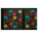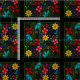 Elegantes lateinamerikanisches Folk Floral Design inspiriert von ecuadorianischen Handwerkern, die aufwändige Blumendetails stimulieren und wunderschöne dekorative Stücke für persönliche und Zuhause-Accessoires schaffen. Dieses Design ist ein digitales Bild und meine Interpretation dieses schönen Stils. Kombiniert eine Reihe von Blume und Botanicals in verschiedenen Größen und Farben und schafft einen hohen Kontrast zum schwarzen Texturhintergrund. Dieses Design ist elegant, dekorativ und wird ein fabelhaftes Akzent für Ihre Innenarchitektur und Wohngestaltung.