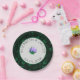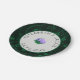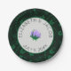 Teller mit grafischer Lavendel-Kamelie-Blume, weißer Hintergrund mit grüner Grenze und Blumenhintergrund. Text ist anpassbar. Achten Sie auf passende Hochzeitsprodukte.