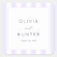 This elegant wedding sticker features a classic design with a lavender striped background and a central white rectangle. The names are prominently displayed in bold serif fonts, connected by a stylish cursive "and," creating a sophisticated look. Perfect for adding a personalized touch to your wedding stationery or gifts, this sticker combines timeless style with a romantic color palette, ideal for celebrating your special day.