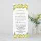 Elegantes Lemons Greenery Wedding Zeremony Programm. Verwenden Sie die Vorlagenfelder, um Ihre Zeremonie- und Brautparty-Informationen hinzuzufügen, und klicken Sie dann auf "Anpassen", um Elemente bei Bedarf neu zu positionieren. Brauchst du Hilfe? Kontaktieren Sie mich über den Link "Diesen Designer Gefragt" auf dieser Seite.