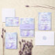 This wedding stationery collection includes invitations, RSVP cards, details cards, thank you notes, menus, programs, table numbers, place cards, and welcome signs. Each piece features the same gorgeous lilac flower artwork on the coordinating purple background, ensuring a polished and cohesive look throughout your entire celebration.
