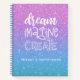 Ein wunderschöner lila und blauer Imitat Glitzer personalisiert 8,5 x 11 Skizze. Die Worte "DREAM IMAGINE CREATE" in einem handgezeichneten Schriftart personalisiert mit Ihrem Namen unten. Passen Sie das Sketchbook mit dem Namen Ihrer Wahl an, damit sich jemand ganz besonders fühlt. Macht ein lustiges Geschenk zum Geburtstag oder zu Weihnachten. Es gibt eine Vielzahl von Farben. Entworfen für Sie von BlackBerry Boulevard.