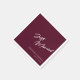 Fügen Sie Ihrem großen Tag eine königliche Touch mit diesen eleganten Just Married Servietten hinzu, die mit moderner Kalligraphie auf einem beeindruckenden lila Hintergrund ausgestattet sind. Diese personalisierten Servietten eignen sich ideal für Hochzeitsfeiern, Cocktailstunden und stilvolle Party. Sie können sich auf Ihre Namen und Ihr Hochzeitsdatum einstellen. Ein kühnes und dennoch elegantes Detail, das Liebe, Luxus und Feiern symbolisiert und gleichzeitig einen Hingucker schafft.