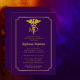 Ein goldener "MD"-Caduceus und ein skallopierter Rahmen-Goldton und ein lila Graduiertenpartydesign, das für medizinische Abschluss personalisiert sein kann. Composite Design von Holiday Hearts Designs (Rechte vorbehalten).