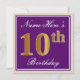 Elegant, Lila, Imitate Gold 10. Geburtstag + Name Einladung
