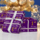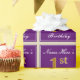 Dieses einfache und elegante Verpackungspapier-Design enthält eine personalisierte Botschaft wie "Name-Here’s 1st Birthday" (mit dem "1st" mit einem Imitat/Imitation goldenem Farblook) in einem lila quadratischen Bereich mit einer schlichten Kontur. Der Name ist in einem eleganten, weiß gefärbten, skriptähnlichen Text und kann angepasst werden. Papier wie dieses könnte vielleicht benutzt werden, um Geburtstagsgeschenke für jemanden zu verpacken, der seinen ersten Geburtstag feiert. [~Z0000220]