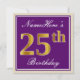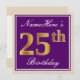 Elegant, Lila, Imitate Gold 25. Geburtstag + Name Einladung