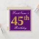 Elegant, Lila, Imitate Gold 45. Geburtstag + Name Einladung