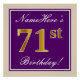 Elegant, Lila, Imitate Gold 71. Geburtstag + Name Poster
