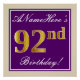 Elegant, Lila, Imitate Gold 92. Geburtstag + Name Poster