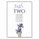 Dieses elegante Blumendesign besticht durch lila Reisungen. Die schönen lila Reisen sind unter der Tischnummer positioniert. Das elegante, blumengeschmückte Hochzeitsdesign eignet sich ideal für jedes Hochzeitsthema. Elegante Iris Blume Hochzeitsdesign Tischnummer mit modernen Elementen. Auch die passenden Hochzeitseinladungen und andere Schreibwaren sind verfügbar.