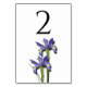 Dieses elegante Blumendesign besticht durch lila Reisungen. Die schönen lila Reisen sind unter der Tischnummer positioniert. Das elegante, blumengeschmückte Hochzeitsdesign eignet sich ideal für jedes Hochzeitsthema. Elegante Iris Blume Hochzeitsdesign Tischnummer mit modernen Elementen. Auch die passenden Hochzeitseinladungen und andere Schreibwaren sind verfügbar.