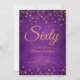 Elegante und glamouröse lila und goldene Geburtstagseinladung für diesen besonderen Meilenstein. Einfach mit allen wichtigen Einladungsinformationen personalisieren und das "Jahre alte" für jeden Geburtstag personalisieren.