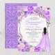 Elegant Lilac Lila Floral Quinceanera Einladung