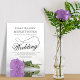 Diese wunderschöne Hochzeitseinladung zeigt ein wunderschönes Foto eines Single, der sich auf seiner Seite in einer lila lila Rose befindet und in einem Wasserbecken mit Wellen und Wellen reflektiert. Das Design verfügt über ein extravagantes Kalligraphieskript mit einem langen, lockigen Schwanz, was es sowohl modern als auch klassisch macht. Elegante, raffinierte und schicke Art und Weise, Ihre Freunde und Familie zu einem besonderen Tag einzuladen. Die Rückseite der Karte ist eine lila, aus Marmor gehaltene Farbe mit einem weichen Muster.
