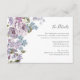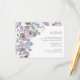 Mit dieser schön gestalteten Einschließkarte erhalten Sie alle wesentlichen Informationen stilvoll. Mit einem anmutigen Seitenbukett aus handbemalten Aquarelllilakeln in weichem Lavendel, lila und blau, ergänzt durch üppige Vegetation, sorgt diese Karte dafür, dass Ihre Hochzeitsdetails elegant präsentiert werden. Die Koordination auf der Rückseite verleiht eine polierte Touch und sorgt für einen nahtlosen und raffinierten Look. Verschaffen Sie sich eine individuelle Gestaltung des Schriftartes, des Stils und der Größen, um Ihre Hochzeitsästhesie zu gestalten. So erhalten Sie alle wichtigen Details, während Sie gleichzeitig ein raffiniertes, zusammenhängendes Thema beibehalten.