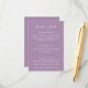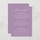 Elegante lila Hochzeitsdetails Gehäuse-Karte mit schicken Kalligraphie-Skript und vollständig anpassbarem Text.