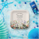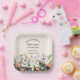 Celebrate your little one’s first birthday with this charming plate featuring a soft off white background and a colorful wildflower border blooming along the bottom edge. The party details are beautifully arranged in a mix of elegant script and classic serif fonts for a timeless, sweet look. Easy to customize with your child’s name and party details.