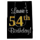 Dieses stilvolle, elegante und raffinierte Geburtstagsgeschenkdesign weist die Ordnungsnummer "54." auf, die ein Imitat/eine Imitation von goldinspiriert Farbverlaufsmuster aufweist, sowie eine Geburtstagsgrüßbotschaft und einen personalisierten Empfängernamen in einem skriptartigen Schriftart. Es hat auch einen schwarzen Hintergrund. Ein eleganter Geschenksack wie dieser kann benutzt werden, wenn man ein Geschenk oder Geschenk zu Ehren eines Vierundfünfzigjährigen gibt. [~Z0000513]