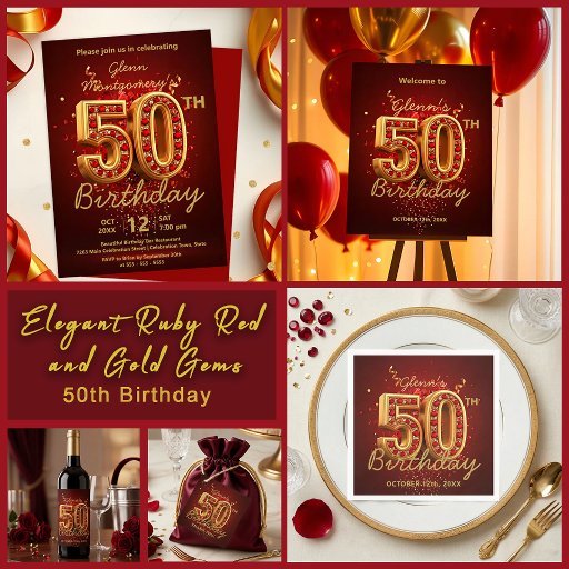 Elegant Ruby Red and Gold Gems 50th BirthdayDesignt von Kristina Lj Petrovska