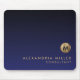 Minimal luxuriöses Monogramm-Design mit eleganter, gebürsteter metallischer Goldmedaille; elegante feminine Typografie mit personalisiertem Namen und Titel unten auf einem Gradientenhintergrund in marineblauen Tönen. Personalisieren Sie Ihre individuelle Verwendung.