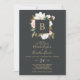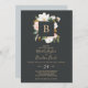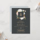 Diese elegante magnolische Schwarz-Weiß-Einladung ist perfekt für eine moderne Hochzeit. Die moodisch-blumengeschmückte Einrichtung umfasst blau-blaue, rosafarbene Torfbäume, atemberaubende Blume aus Magnolien und Baumwolle mit goldenen und grünen Blätter in luxuriösem Ambiente auf dunklem Hintergrund. Personalisieren Sie die Karte mit Ihrem letzten Monogramm.