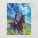 Ein anmutiger Reiter und Pferd im Manga-Stil in einer ruhigen alpinen Landschaft. Dieses lebendige Kunstwerk spiegelt die Schönheit der Berge und den Geist des Abenteuers wider.