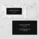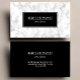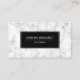 A chic, trendy black and white business card design featuring a gray and white marble pattern background. Personalize it with your name and title in white on a black rectangle. On the reverse side, add your name, title, and contact details in white on a black background.