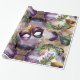 Dieses elegante Packpapier mit Mardi Gras Maske, Federn und dekorativen Gegenständen auf einem Tintenöl-Hintergrund ist ein Spaß. Die Farben, die in der Gestaltung verwendet werden, sind die traditionellen Mardi Gras Farben, lila, grün und gold. Dieses Verpackungspapier ist perfekt, um Geschenke für verschiedene Anlässe zu verpacken.