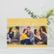 Diese moderne und stilvolle Hochzeit speichern die Datums-Ankündigungskarten enthalten drei 2 x 3" Verlobungen Fotos mit dem Datum in elegantem Drehbuch. Personalisieren Sie die Kartenvorlagenformulierung auf der Vorder- und Rückseite der Karte für Ihren großen Tag. Die markierten Gelb- und Weiß-Farben können individuell auf Ihr Hochzeitsfarbschema abgestimmt werden.