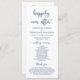 Herzlich willkommen in unserer Hochzeitstypografie, dem eleganten, modernen Romantik Navy Blue-Script, dem Programm zur Hochzeitsfeier. Es ist mit Scrollakzent entworfen, der personalisiert werden kann mit benutzerdefiniertem/personalisiertem Text für Ihr Brautparty, Zeremonie Details, Gedenkhinweise und Dankeschön-Nachricht. Wenn Sie weitere Programmkarten-Typen und -Größen suchen, durchsuchen Sie bitte unseren passenden Programmkartenabfrageabschnitt.