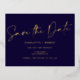 Moderne, elegante reale Goldfolie-Schrift marineblaue Hochzeit speichern das Datum mit einer lässigen und coolen Skriptkalligraphie .