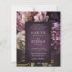 This design is part of a dark and moody maximalist floral wedding invitation suite, featuring lush, oversized botanical blooms with a deep jewel tone purple palette. The luxurious fine art floral aspect is paired with elegant typography for a timeless and romantic aesthetic. Ideal for fall, winter, or evening weddings, this design suits couples planning a sophisticated celebration with a touch of drama.